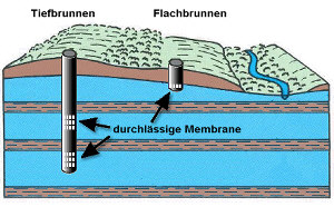 Der Sindelfinger Untergrund besteht aus stark wechselnden Gesteinen, dichten tonigen Schichten (nicht wasserdurchlässig) und durchlässigen Sand- und Kalksteinen (Bild oben). Grundwasser bildet sich immer dort, wo durchlässige (blau) auf nicht durchlässigen Schichten liegen (braun). Dieses kann durch Bohrungen und Brunnen von unterschiedlicher Tiefe gewonnen werden. In der Umgebung von Sindelfingen gibt es 6 verschiedene Grundwasserstockwerke. Davon sind vor allem der obere Muschelkalk und der weiter über ihm liegende Gipskeuper bedeutsam (Bild unten).
