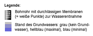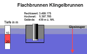 Die einzelnen Förderschächte des Klingelbrunnens reichen bis zu 18 m in den Untergrund. Das Wasser gelangt von unten über Filterkiese in den Schacht.